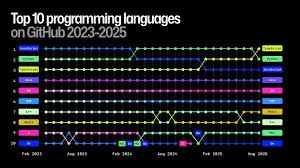 Нижче — графік популярності ключових мов програмування у світі у 2025 році.