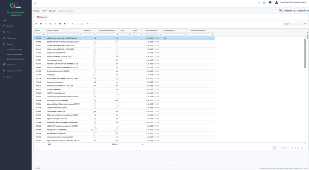- Облік запасів і розрахунок залишків по партіях та одиницях.