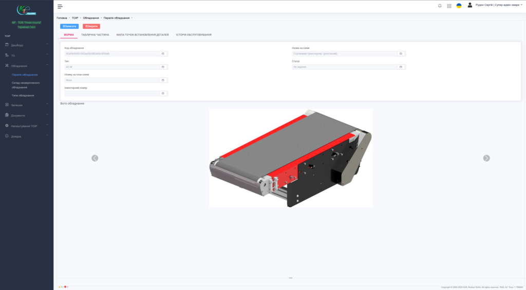 - Картка обладнання з 3D-рендером