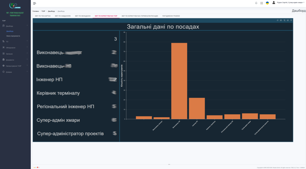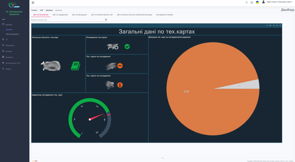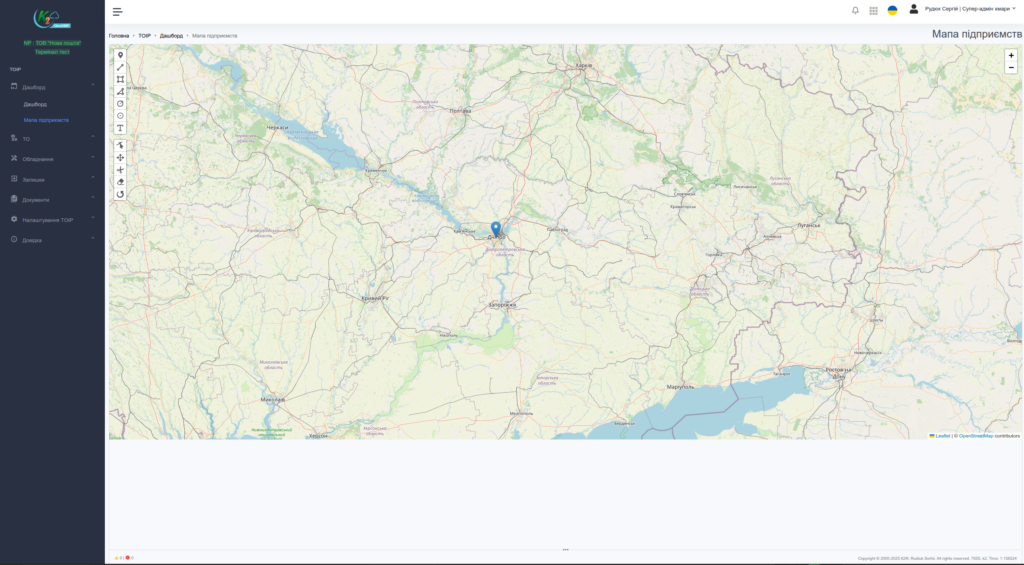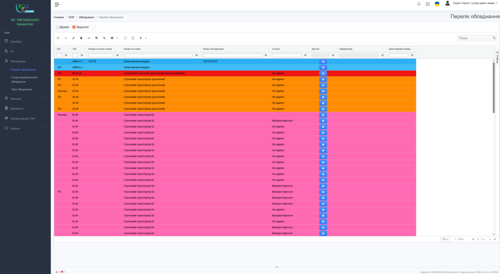 - Гнучкий адміністративний інтерфейс для керування процесами ТОІР, обладнанням, складами та завданнями.