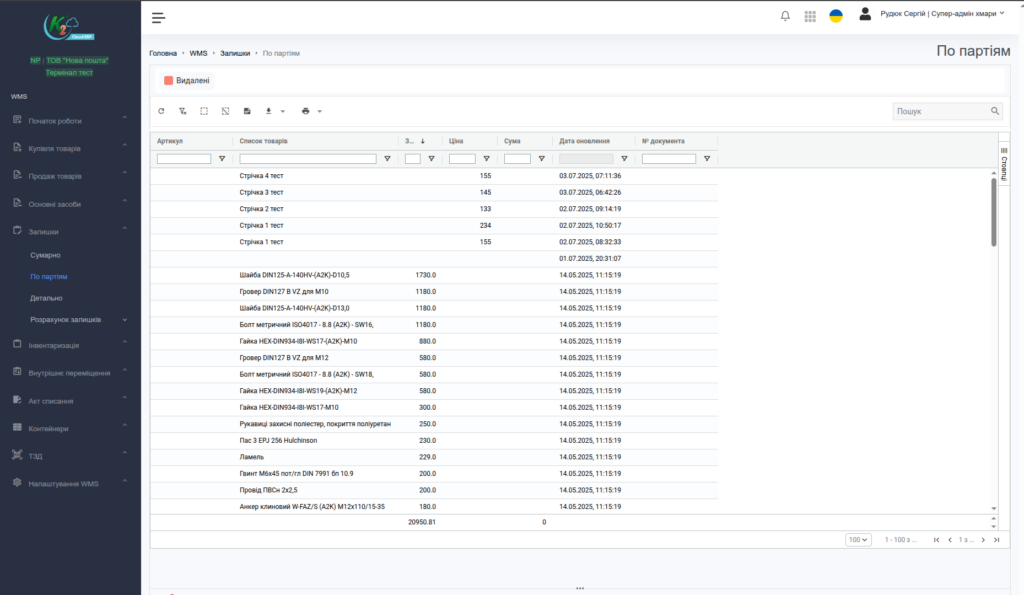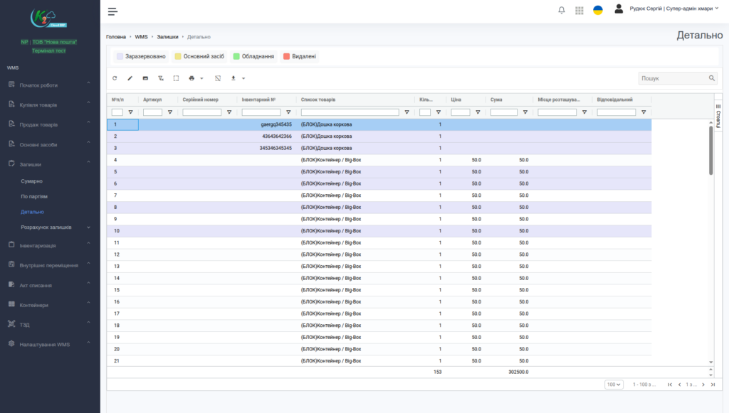 - Проведення інвентаризації, внутрішніх переміщень, актів списання.